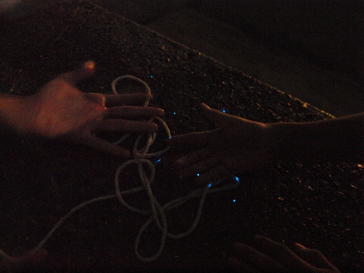 ほぼ真っ暗闇で、青白い点だけが、浮かび上がっています。