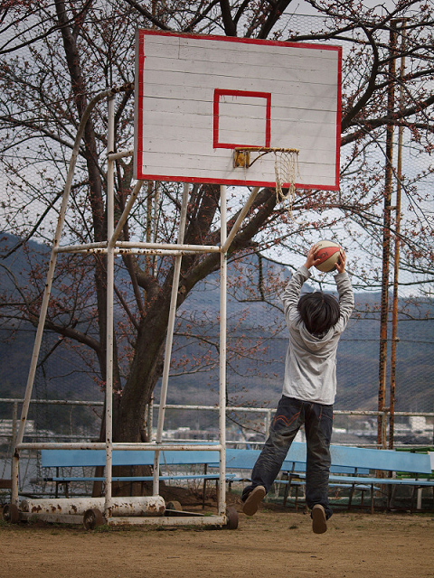 横手に瀬戸内海、と桜。バスケゴールやローラーはもちろん、実はナイター設備もあり。