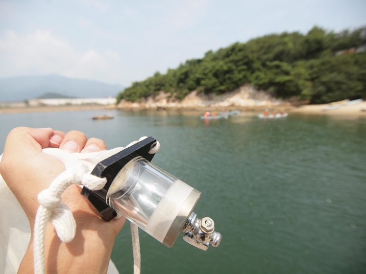 ごそごそと、その昔、ヒゲ先生が投げておられた採取装置を海に投げながら、