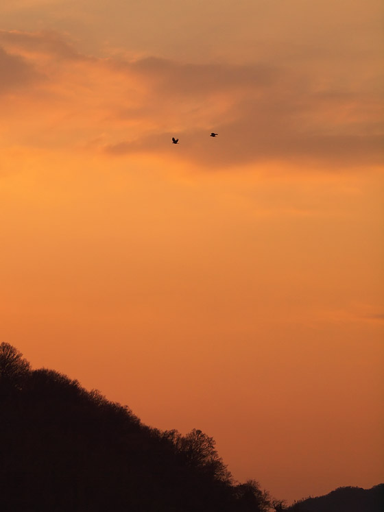 急に下がって、オレンジ色に輝きだすと、機材を担いで、