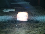 ドライアイスに穴をあけ、還元剤のマグネシウムをいれ、マグネシウムリボンで点火する。