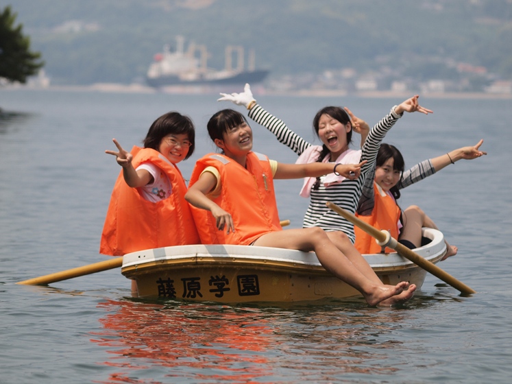 学園の助手スタッフは。みな、すいすいボートをこぎます。