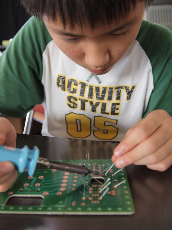 本科夏期合宿中1、中2の「電子工作」