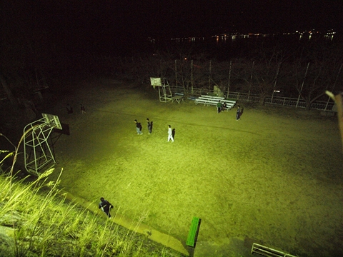 夜のシャボン玉ってきれいだよね~とお姉さん達は大はしゃぎです。