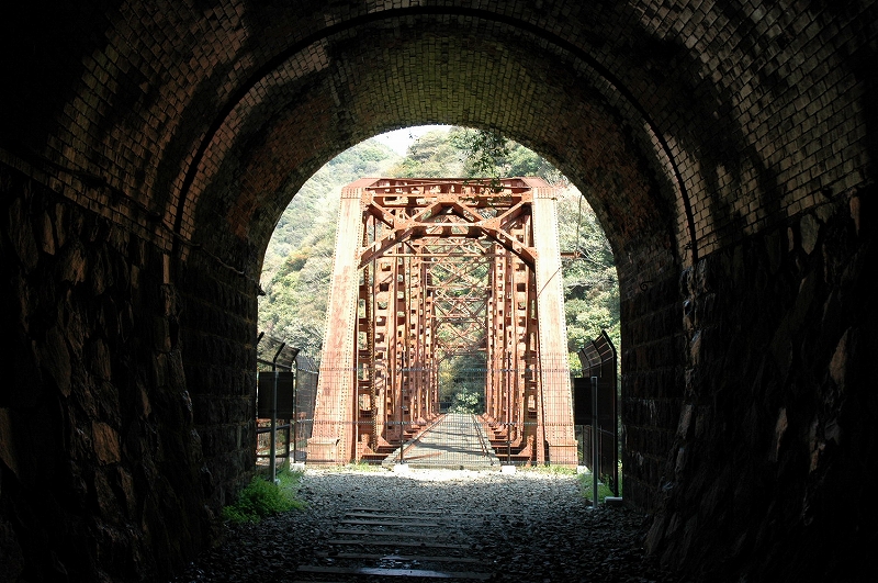 レールこそ撤去されてはいるがコースの殆どに枕木が残り、時折トンネルをくぐり鉄橋を越えることのできるこの廃線跡は、巨岩と清流の武庫川渓谷を縫うように進むたいへん美しくかつ味わい深いところだ。