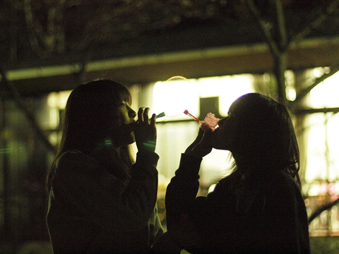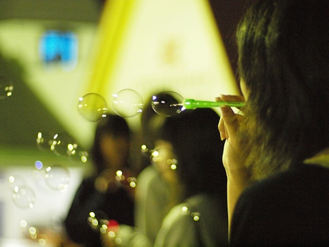 夜のシャボン玉ってきれいだよね~とお姉さん達は大はしゃぎです。