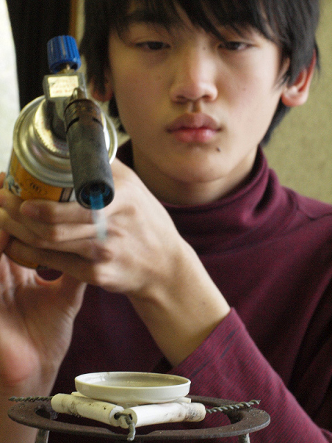 春期合宿では、中2の生徒達は、青銅鏡作りを行いました。